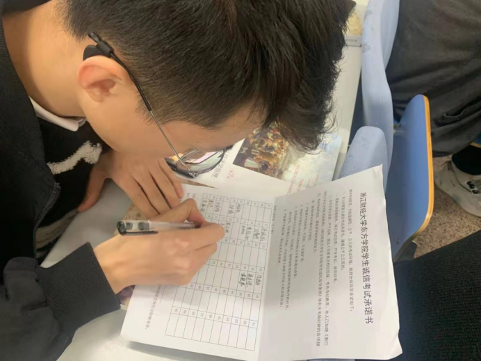 会后,同学们认真学习了诚信考试承诺书的有关内容,并在承诺书上签字。