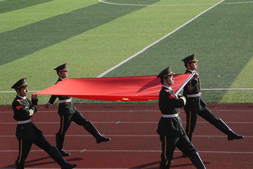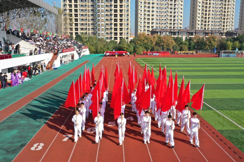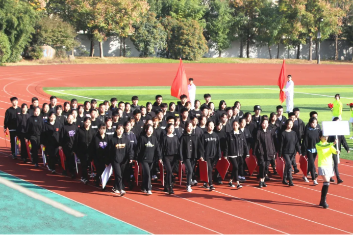 伴随着慷慨激昂的运动员进行曲,威武雄壮的国旗护卫队、热情洋溢的鲜花队、意气风发的红旗队闪亮出场。随后,各方阵依次入场,队员们以高亢嘹亮的口号,铿锵有力的步伐一次走过主席台。
