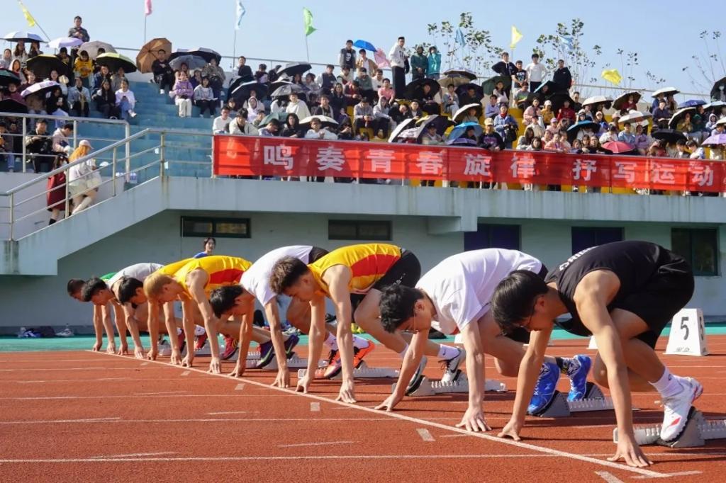 运动场上,各项比赛紧张有序地进行。运动健儿们顽强拼搏、奋勇争先,裁判员坚持原则、公正执裁;工作人员恪尽职守、认真负责。看台上,同学们大喊加油、掌声雷动。