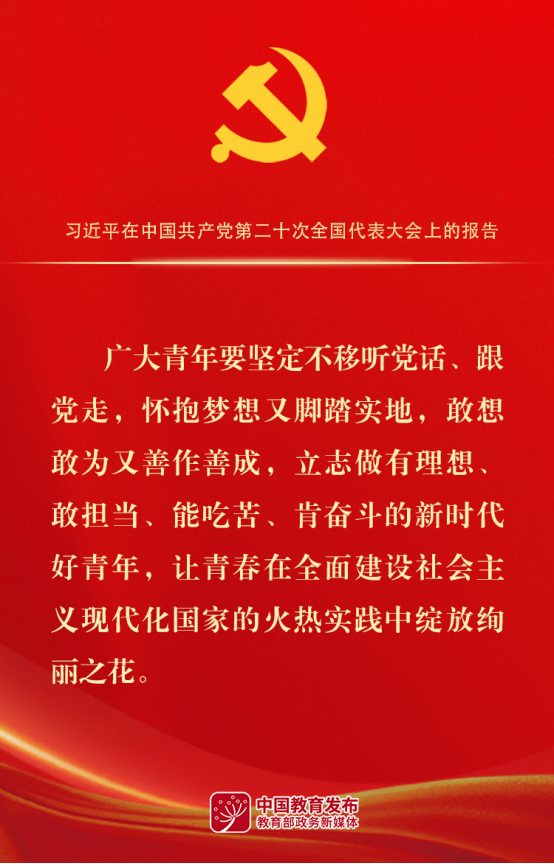 作为新时代的青年人,我们生在红旗下,长在春风里,从党的十九大到党的二十大,是实现“两个一百年奋斗目标”的历史交汇点。党的二十大强调,全面建设社会主义现代化国家、向第二个百年奋斗目标进军的新征程上,明确宣示了党在新征程上举什么旗、走什么路、以什么样的精神状态、朝着什么样的目标继续前进,对团结和激励全国各族人民为夺取中国特色社会主义新胜利而奋斗具有十分重大的意义。