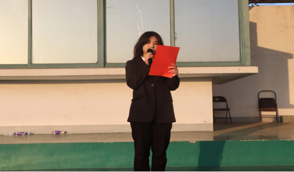 阮娉婷老师作为教师代表,在国旗下发表了题为“做有理想、有本领、有担当的新时代青年”的讲话。希望同学们求真学问,练真本领,把学习作为一种责任、一种生活方式。同时,希望同学们矢志不渝听党话,自觉担当重任,勇于作为,奋进新时代,启航新征程,在实现中华民族伟大复兴的时代洪流中踔厉奋发、勇毅前进。