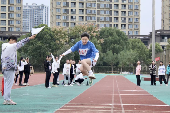运动场上,各项比赛紧张有序地进行。运动健儿们顽强拼搏、奋勇争先,裁判员坚持原则、公正执裁;工作人员恪尽职守、认真负责。看台上,同学们大喊加油、掌声雷动。