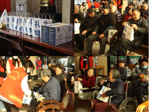 青年志愿者们给老人们赠送爱心慰问品