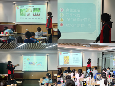 为了深化孩子们对安全饮食的理解,志愿者们细致入微地阐述了健康生活的四大要诀:探寻食色生活的艺术、顺应四季饮食的智慧、揭秘食物疗病的巧妙、以及品味饮水保健的哲学。
