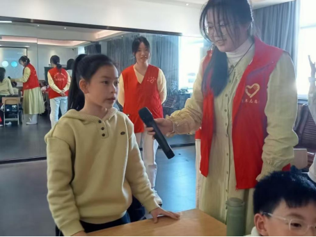 “团扇的细腻与精致,是东方美学的独特魅力,是时光流转中的诗意。”课程拉开序幕,志愿者们向孩子们们详尽地介绍了团扇的历史与文化,成功激起了他们对团扇的浓厚兴趣。在有趣问答环节中,他们不仅了解了团扇的款式,还学会了简单的团扇创作。
