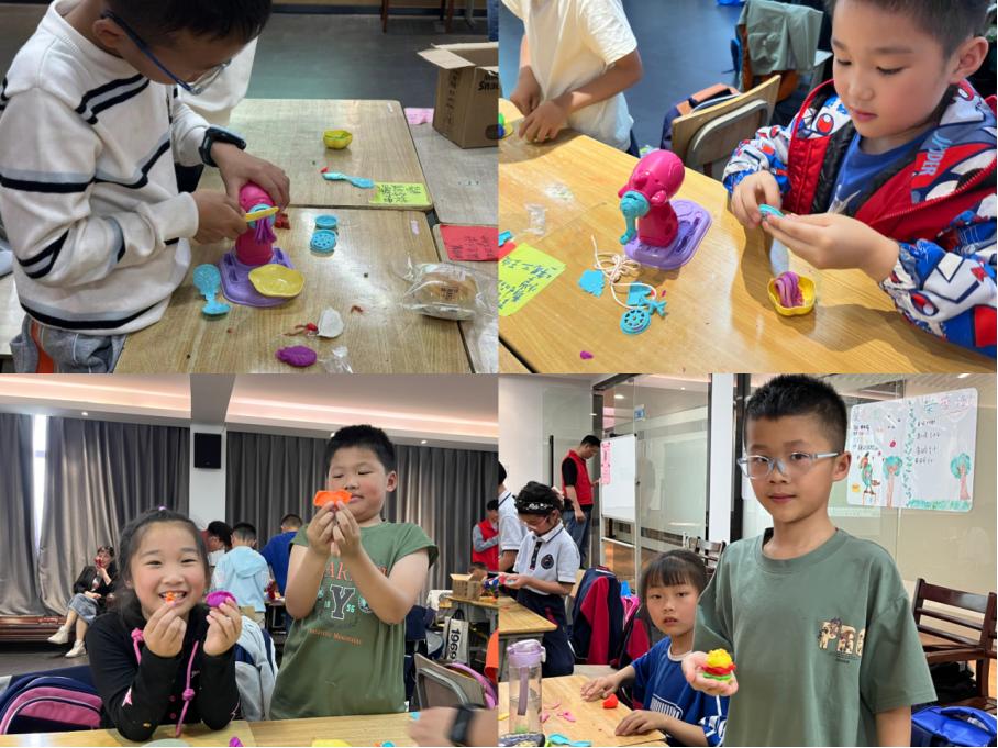 为了增加小朋友们的体验感,志愿者准备了软陶泥粘土。活动开始,志愿者首先耐心解释如何将黏土塑性,介绍了简单的手工制作技巧后,便将舞台交给小朋友们。他们充分发挥想象力,塑造出了形态各异的动物、植物、卡通形象等,当然还有独特的抽象作品。小朋友们互相帮助,分享着粘土和工具,教室里充满了欢声笑语。