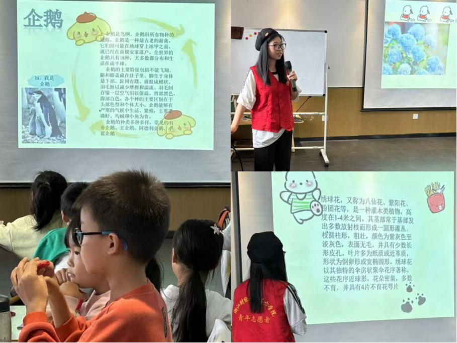 “生物世界奇妙多,万物生长各不同。”课程拉开序幕,志愿者向小朋友们生动地介绍了生物的多样性和趣味性,引导他们探索生物世界的奥秘。