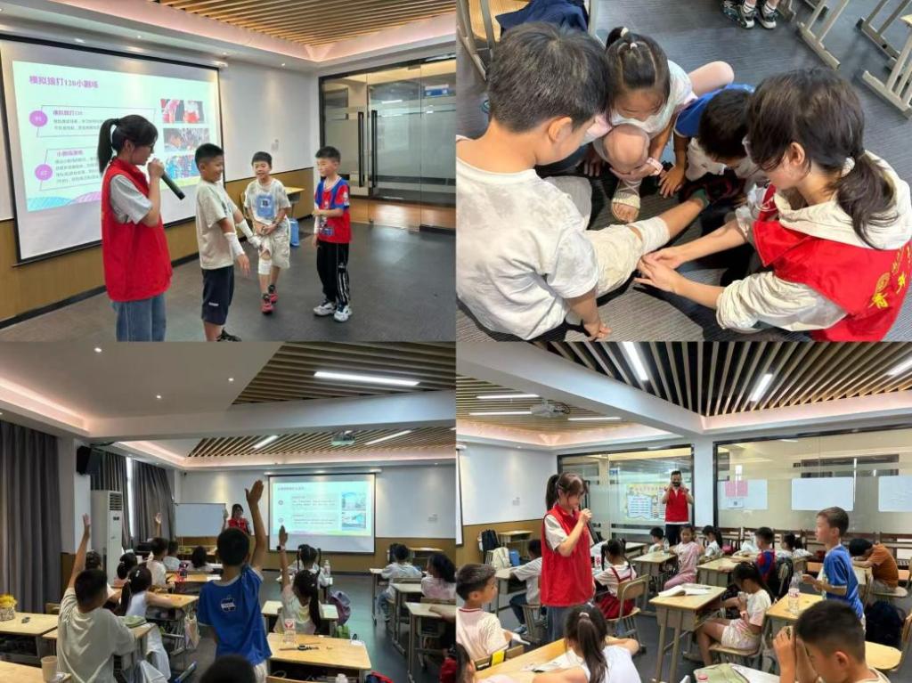 在知识讲解后,“我是小小急救员”环节将活动推向高潮。孩子们分组进行角色扮演,化身“伤员”积极配合,在志愿者指导下,认真练习伤口清洁、绷带包扎,连缠绕松紧度都把握得十分到位。同时,大家还模拟拨打120电话,学习清晰说明情况。通过模拟真实急救场景,孩子们不仅掌握了急救技术,更培养了临危不乱的心理素质,急救知识的种子就这样在他们的心中悄然播撒。