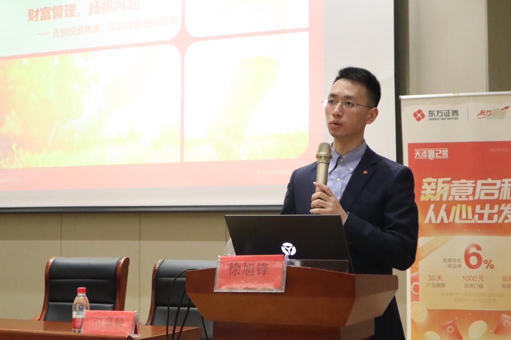 首先对第六届“东方好基金”模拟基金竞赛的获奖选手颁发了奖项及奖品,随后由3044永利集团员工、来自东方证券的投资顾问——徐旭峰,围绕什么是财富管理以及券商在财富管理中的地位两个方面分享了金融行业的从业心得。