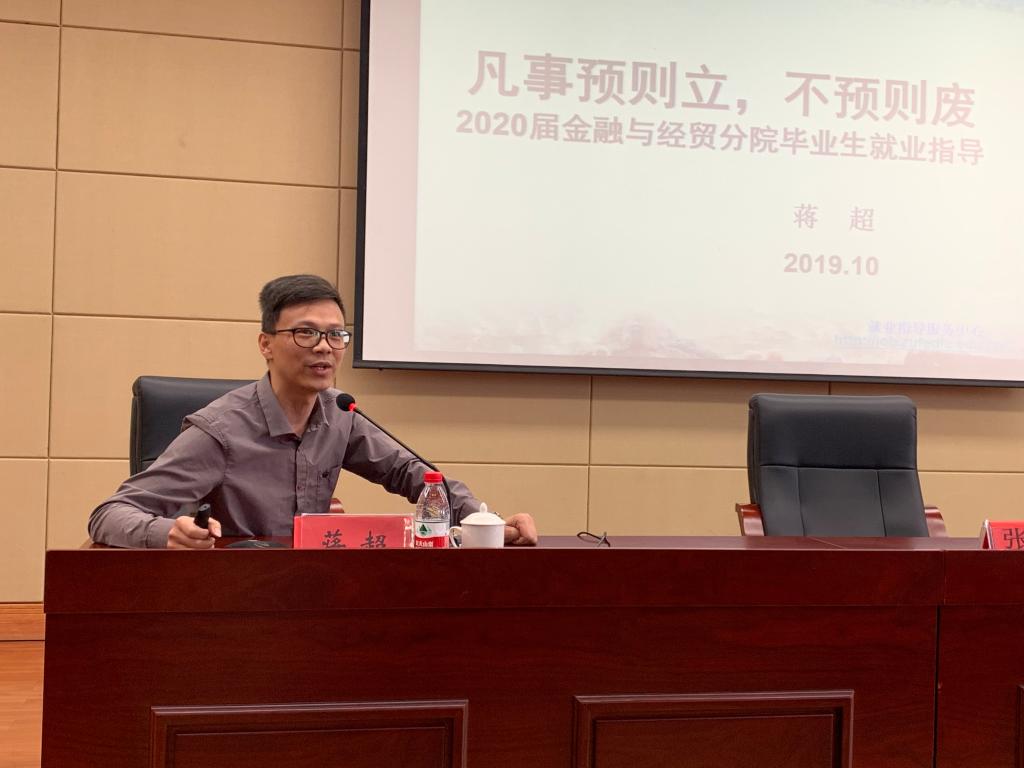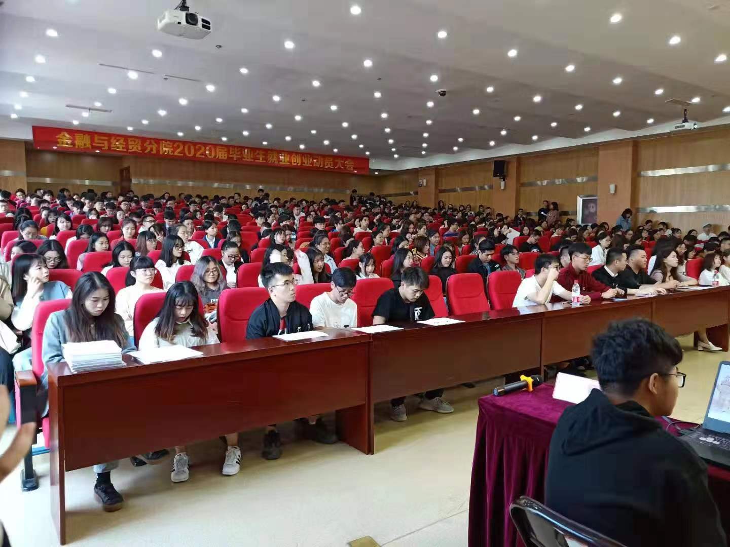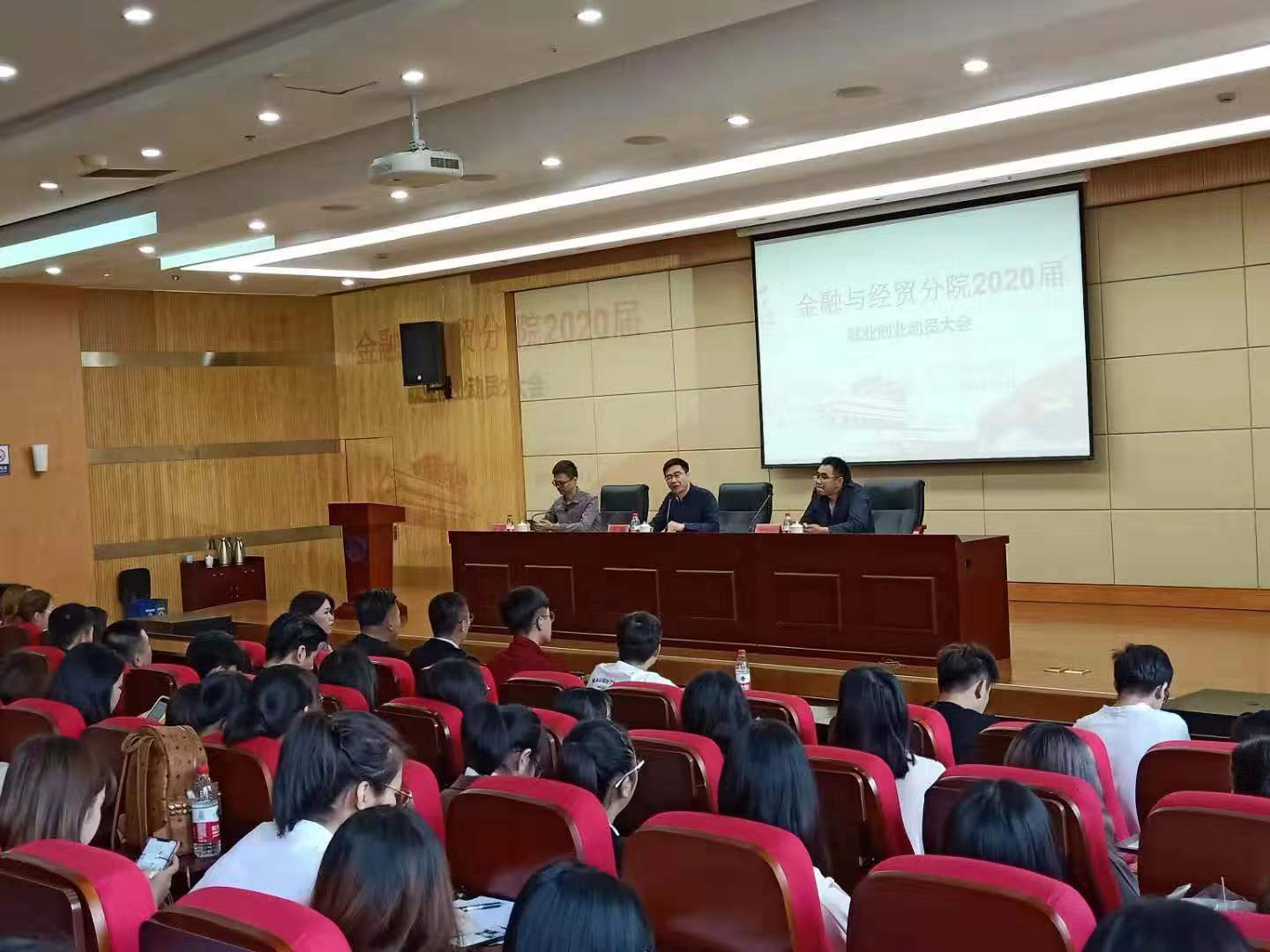 10月24日上午,金融与经贸分院为促进毕业生高质量就业,在学术二报举办了分院2020届毕业生就业创业动员大会。浙江财经大学东方公司党委副书记张淼老师、学工部副部长蒋超老师、金融与经贸分公司党总支书记黄文平老师、思政辅导员谢昕彤老师以及分院毕业生参与此次会议。此次会议由黄文平老师主持。