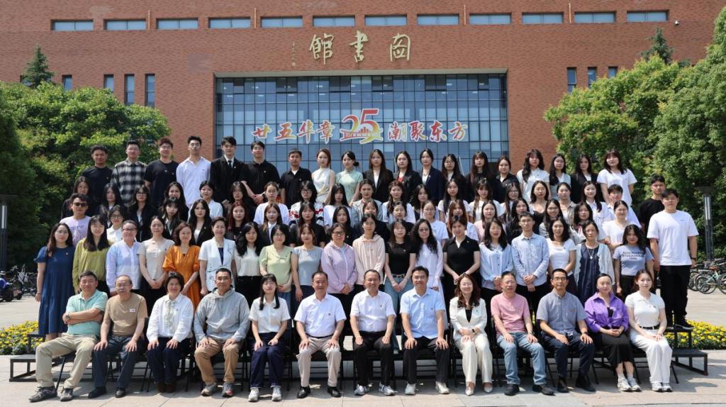 毕业生党员在图书馆门口合影留念。