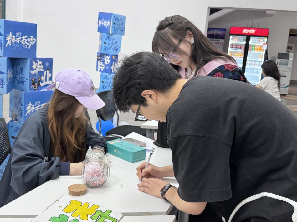 毕业生党员在明信片上留下寄语,传递离别祝福,作为青春与初心的见证,未来回望时砥砺前行,同时以党员身份相互激励,铭记共同奋斗的青春与责任,凝聚党员情怀,传递使命接力。