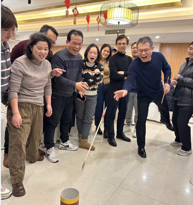 本次趣味活动包含“筷子夹弹珠”、“321看这边”、“你比我猜”、“投壶”等几个趣味游戏。40余名教职工抽签随机分成4个团队,每个团队齐心协力,团结协作,共同完成各项趣味活动。
