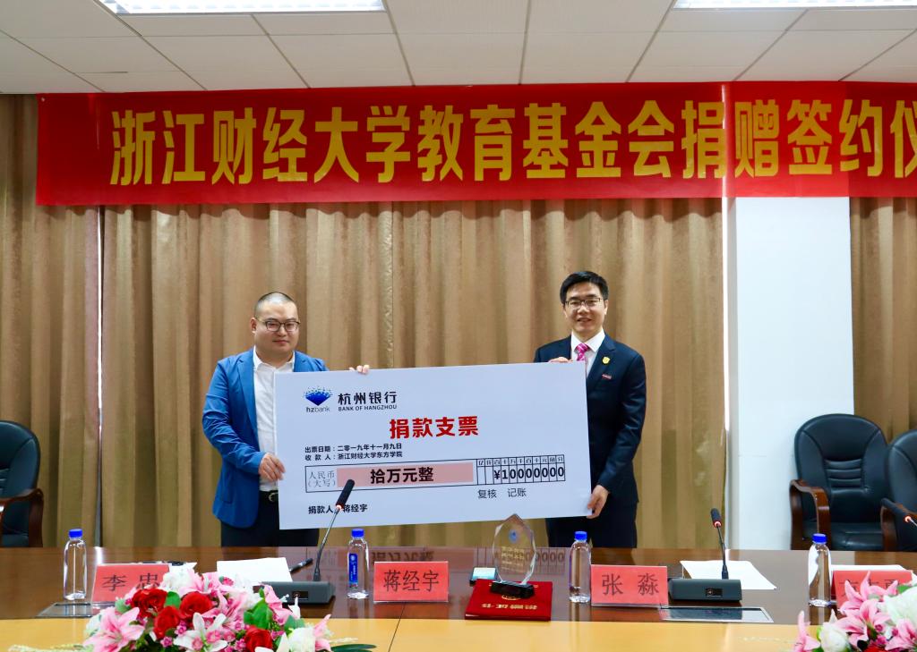11月9日下午,“蒋经宇教育事业发展基金”捐赠签约仪式在公司举行。公司党委副书记张淼,浙江海邦人才创投基金副总裁蒋经宇,相关职能部门负责人,金融与经贸分院负责人、分院各系主任,员工菁英剧社负责人等出席签约仪式。