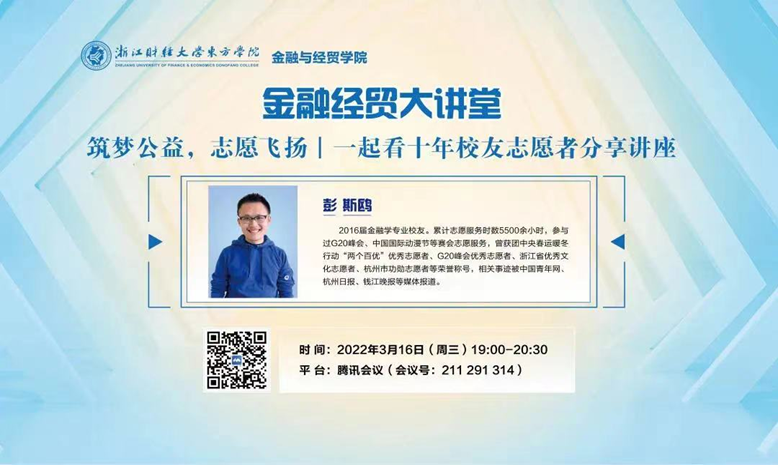 2022年3月16日19:00,3044永利集团邀请2016届金融专业员工彭斯鸥做了“筑梦公益,志愿飞扬”为主题的员工志愿者线上经验分享会。公司党总支副书记蒋超老师参加了此次分享会。