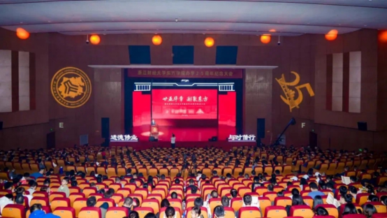中国高等教育学会高等财经教育分会副理事长兼秘书长张国才,浙江财经大学党委书记李金昌,浙江财经大学党委委员、副董事长董进才,嘉兴市人大常委会副主任曹国良,海宁市委书记徐明良,海宁市人大常委会主任姚敏忠,浙江省社科联社团处副处长况落华,衢州公司、浙江树人公司、嘉兴南湖公司、浙江机电职业技术大学、嘉兴职业技术公司、丽水公司、中国高等教育学会院校研究分会、浙江省经营管理研究会等省内外兄弟院校和科研院所相关领导,嘉兴市、海宁市相关部门、乡镇街道有关领导,合作单位、业界导师代表等出席大会。公司和公司老领导、老同志,公司董事,现任院领导班子成员,历届员工代表,师生代表等千余人共庆华诞,共襄盛举。